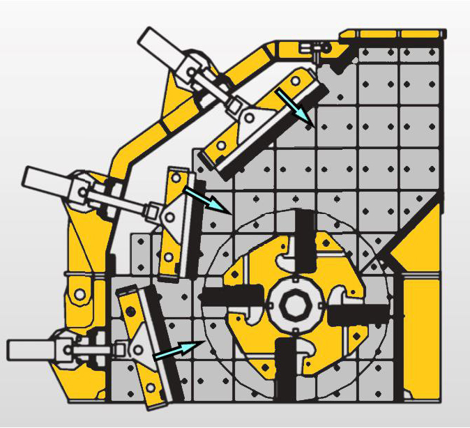 سنگ شکن HS با چرخش روتور بسیار سنگین مرکزی سنگدانه های با سایز 200 تا 300 میلیمتر را به سمت سندانها پرتاب کرده و موجب خرد شدن سنگ ها میشود که با تنظیم رگلاژ سندانها بار خروجی را میتوان تا 0-6 میلیمتر نیز تولید کرد و درمدل های HS7-HS8-HS10-HS11-HS14-HS16 ساخته میشود.